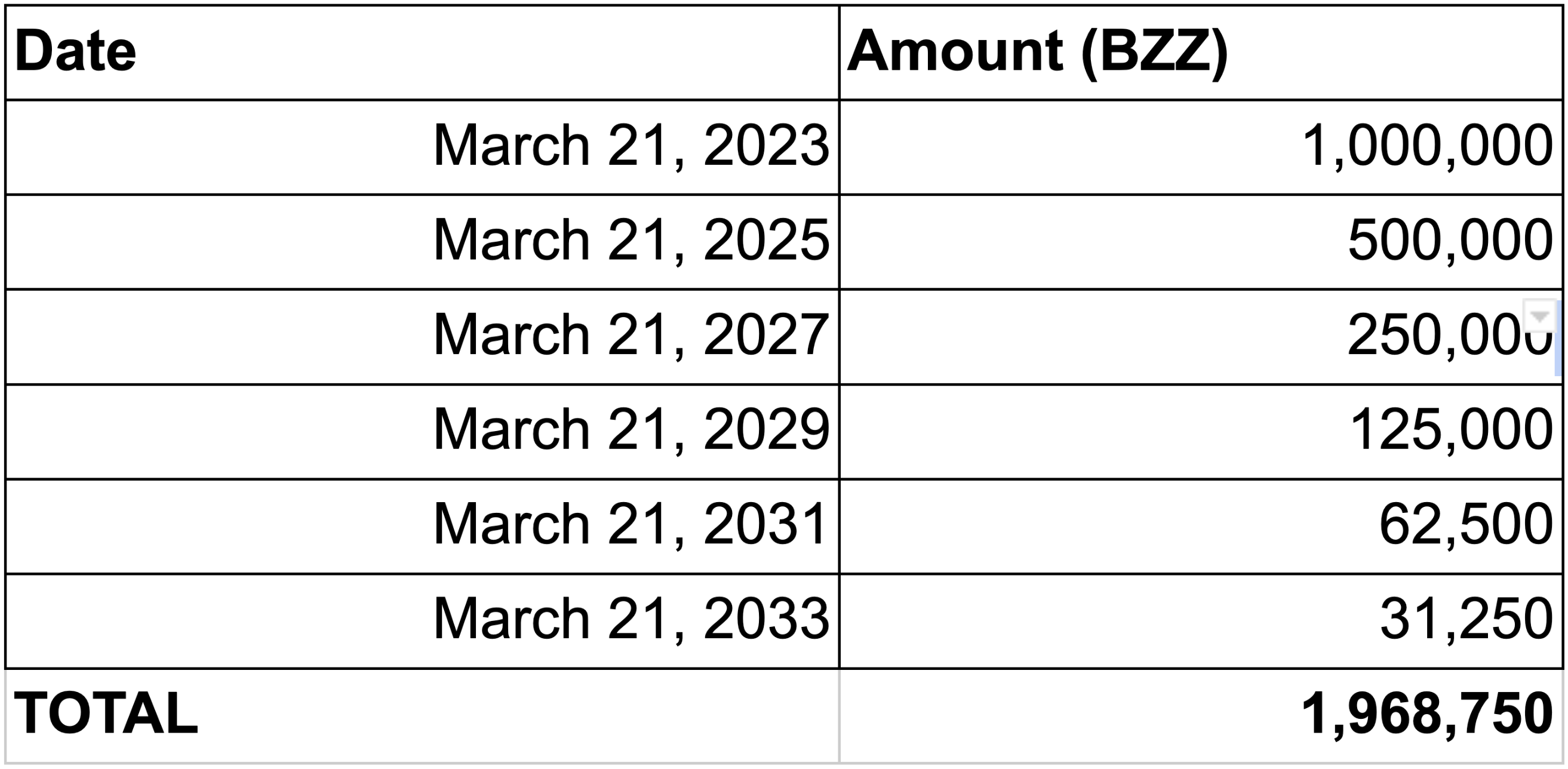 - The “remaining” 31250 BZZ in the tenth year will carry on